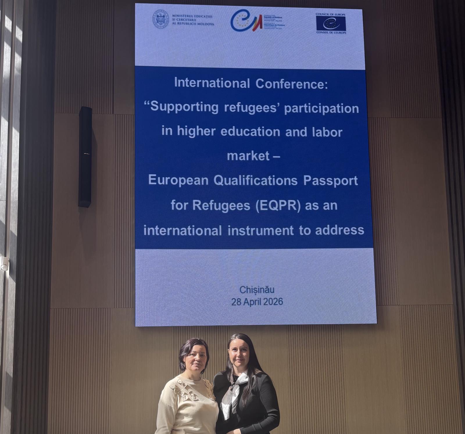 Astăzi, 28 aprilie 2026, doamna Sîrbu Snejana, director adjunct pentru instruire și educație, și doamna Boaghi Elena, șefă a Secției pentru Asigurarea Calității, au participat la Conferința Internațională „EQPR – Pașaportul European al Calificărilor pentru Refugiați – instrument de facilitare a accesului refugiaților în învățământul superior și pe piața muncii”. Evenimentul a reunit actori relevanți din domeniul educației, recunoașterii calificărilor și integrării socio-profesionale, oferind un cadru valoros de dialog și schimb de experiență la nivel național și european.